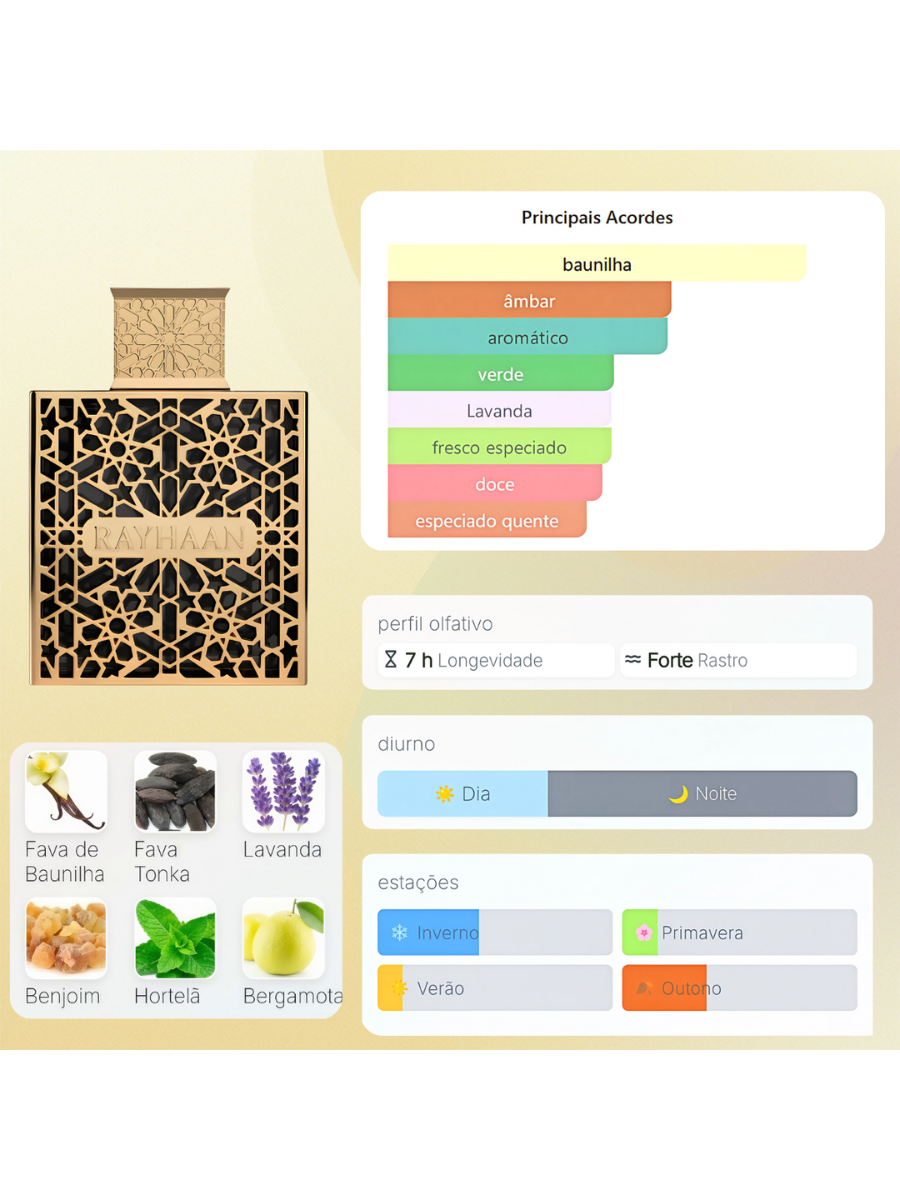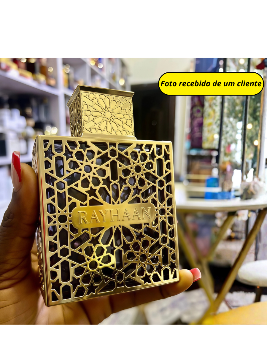 3.A fixação é realmente duradoura? É excepcional! Este é um dos perfumes com maior durabilidade da linha Rayhaan, permanecendo na pele até o banho do dia seguinte.